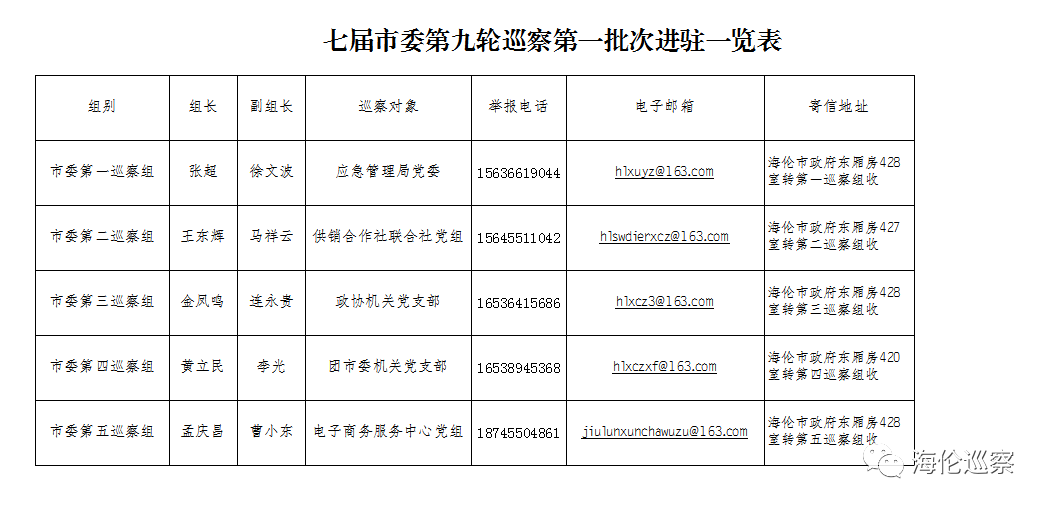 巡察期间,市委各巡察组均开通举报电话(同时接收手机短信)、征求意见箱和电子邮箱等联系方式,欢迎广大党员干部群众反映有关情况和问题。
